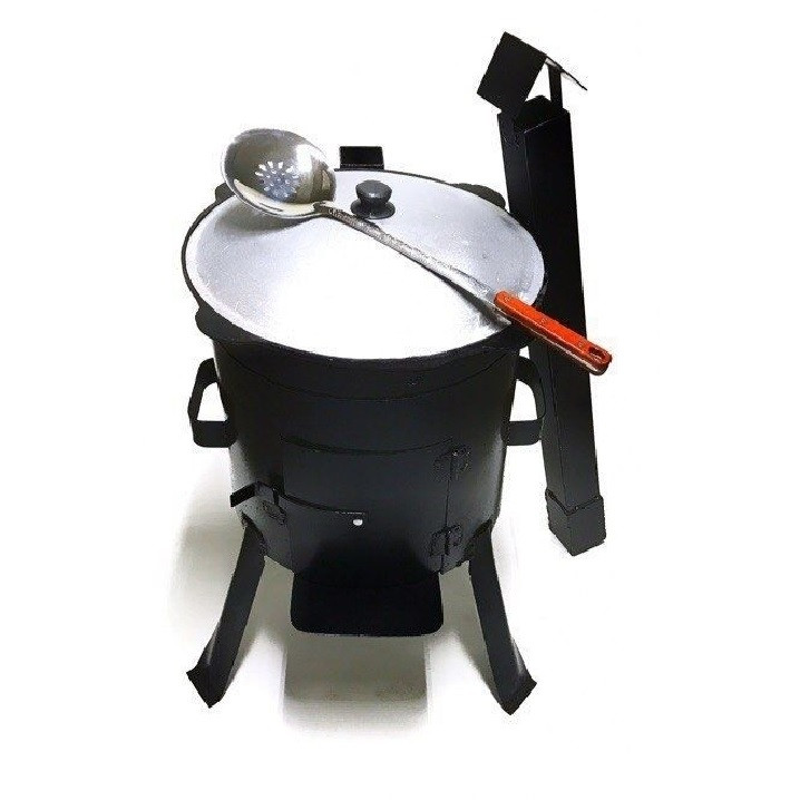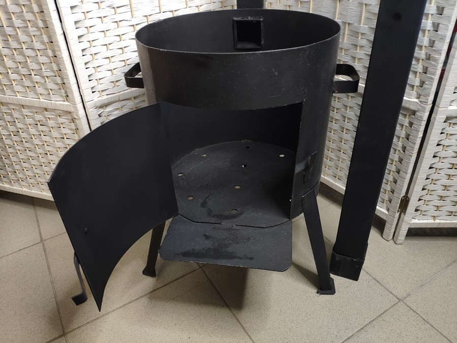 В данной печи в 3-ри приваренные ножки, дверца, дымоход, покрытии печи сделано из термостойкой эмали, качество обработки на высочайшем уровне. Вы не найдете заусениц, острых, не зашлифованных кромок на данной печи. Ножки обеспечивают великолепную устойчивость. Данная печь идеально подойдет для использования на даче, а благодаря разборному функционалу, поместиться даже в небольшой багажник легкового автомобиля и Вы сможете удивить блюдами в казане гостей не только дома, но и на природе.