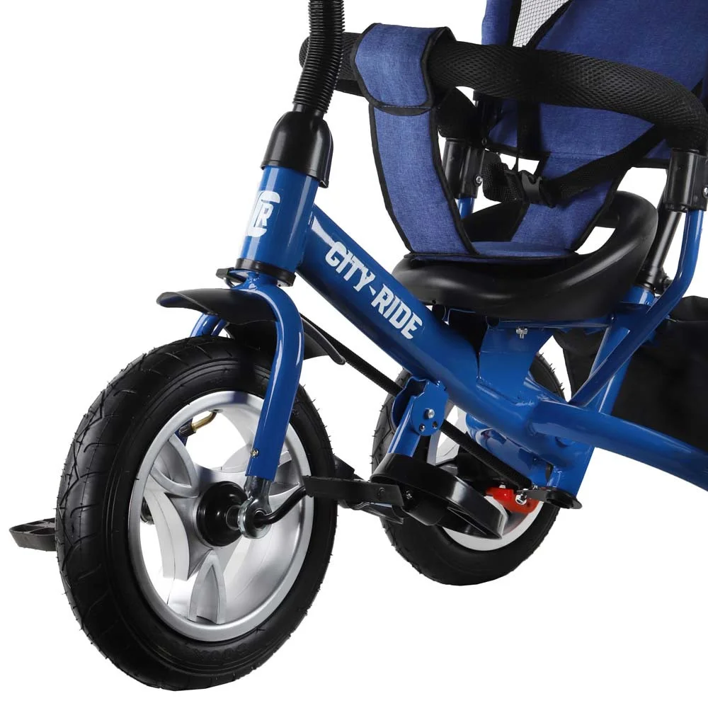 Трехколесный велосипед с ручкой трансформер City Ride Comfort надувные колеса 12/10, арт. 05DBL синий