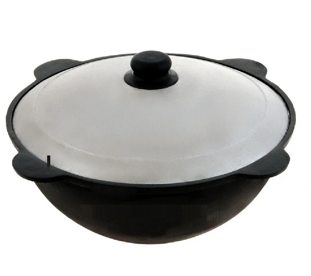 Узбекский казан выполнен гладким литьем с толстыми стенками, плоским или круглым дном на выбор и имеет по бокам четыре ручки. В комплект входит крышка, которая во время приготовления способствует сохранению необходимой температуры внутри казана, благодаря чему сохраняются все полезные свойства продуктов. Узбекский казан можно использовать как на открытом огне, так и на плите, в духовке, в печи.
