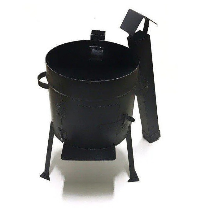 В данной печи в 3-и несъемные, приваренные опоры (ножки), дверца, дымоход, покрытии печи сделано из термостойкой эмали, качество обработки на высочайшем уровне. Вы не найдете заусениц, острых, не зашлифованных кромок на данной печи. Ножки обеспечивают великолепную устойчивость. Данная печь идеально подойдет для использования на даче, а благодаря разборному функционалу, поместиться даже в небольшой багажник легкового автомобиля и Вы сможете удивить блюдами в казане гостей не только дома, но и на природе