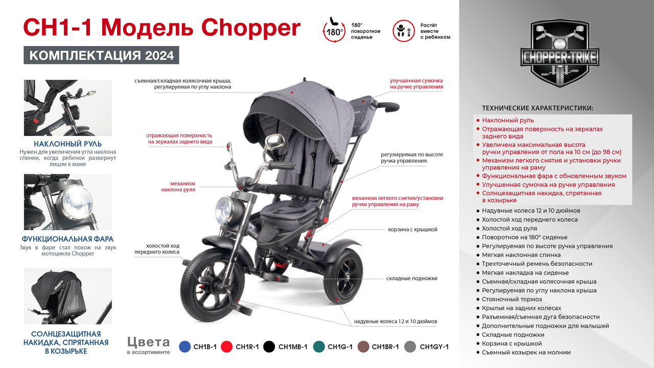 Велосипед с ручкой управления Chopper одна из самых уникальных моделей на рынке трехколесных велосипедов.