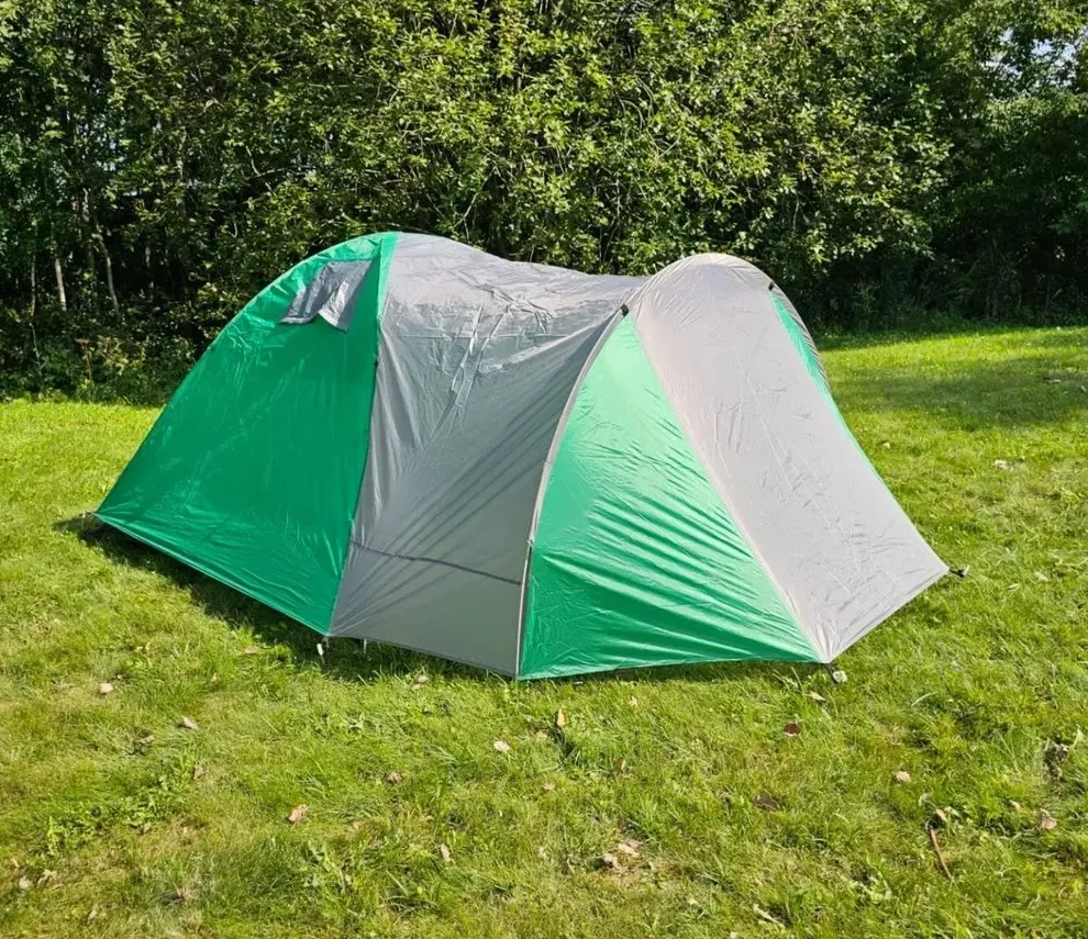 Туристическая палатка 4 местная двухслойная CD1036 имеет просторный тамбур и одну комнату для четырех человек.