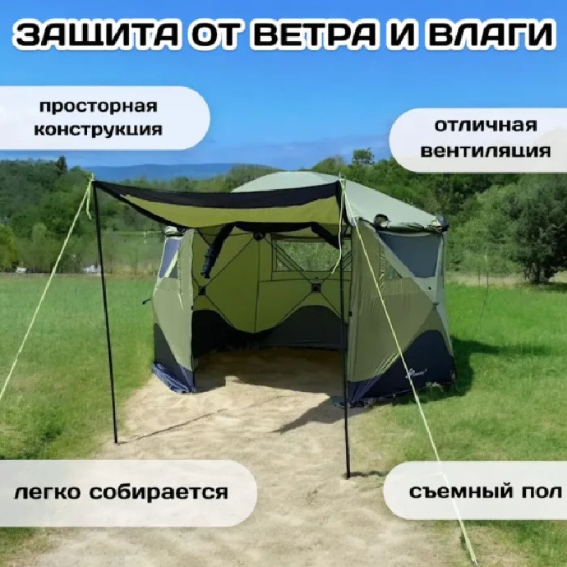 Этот шатер отлично подойдёт для семейных поездок, дружеских встреч, фестивалей или активного отдыха на природе. С ним вы сможете наслаждаться каждым моментом вашего путешествия, не беспокоясь о погодных условиях.