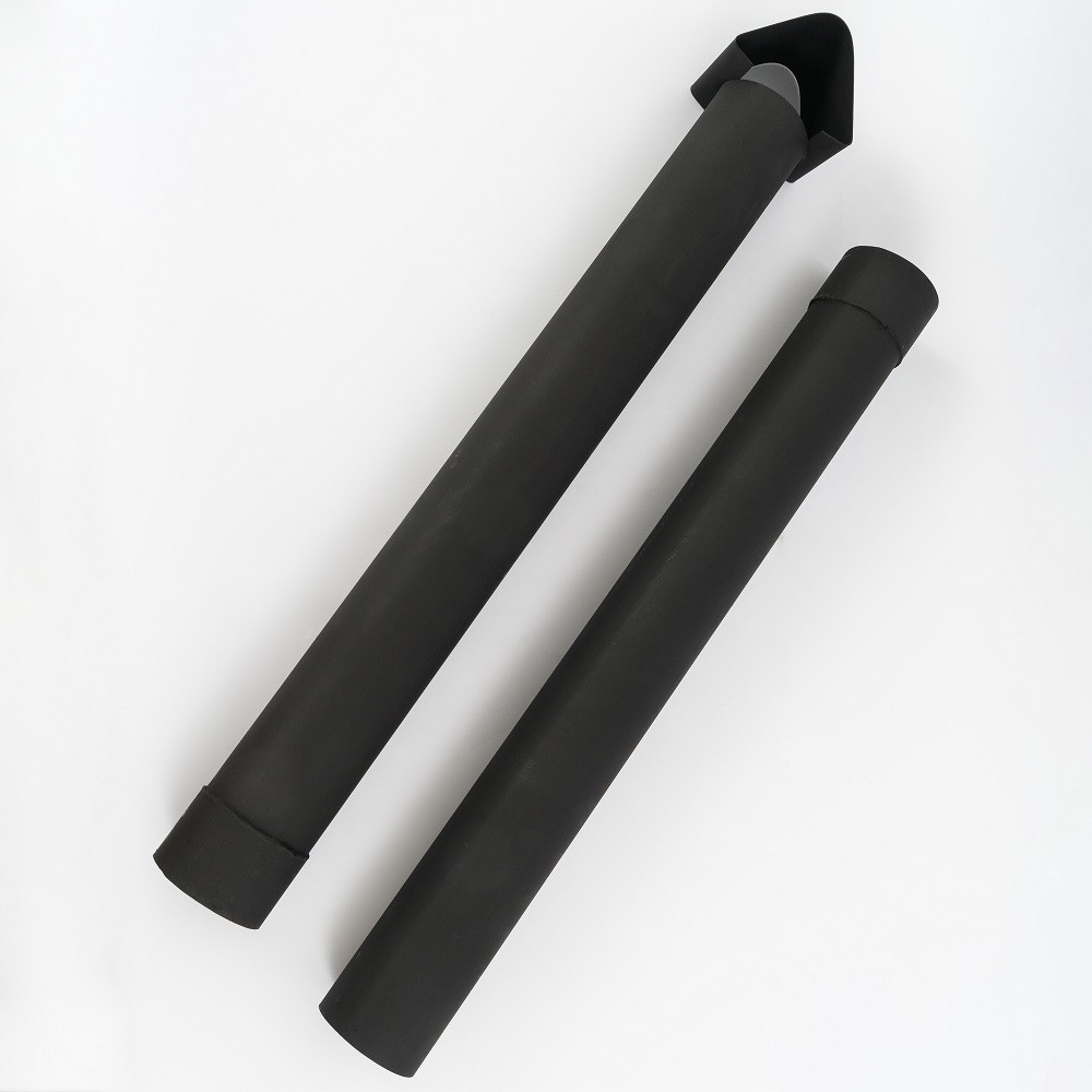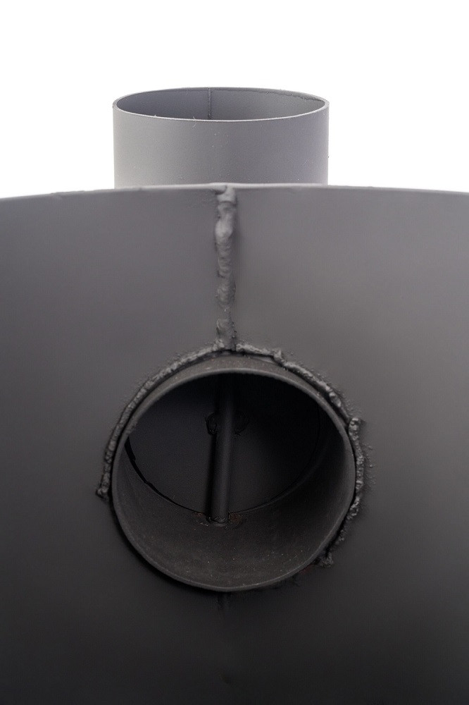 - С высоким круглым дымоходом (труба из 2 частей). Толщина металла трубы 1,5 мм. Высота собранного дымохода - 132,5 см